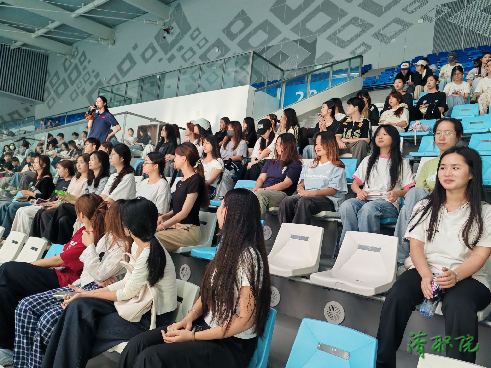 活动当天,师生们依次参观了游泳馆和体育场,一气呵成的流线的建筑造型让大家感受到了体育运动的力量与速度,以及“更高、更快、更强”的奥林匹克精神。通过讲解员的讲述,师生们了解了清远体育中心为承办第十五届全国运动会在优化赛事保障、提升赛事组织服务方面做出的努力。现场气氛热烈,师生们热情高涨,不时驻足交流讨论,还用手机拍照记录下所见所闻。不少学生表示,这种“边走边学、边看边悟”的教学模式新颖独特,让他们对“中国式现代化”“坚持以人民为中心”“新发展理念”等理论知识有了更深刻的理解,同时也激发了他们对家乡发展的自豪感与责任感。