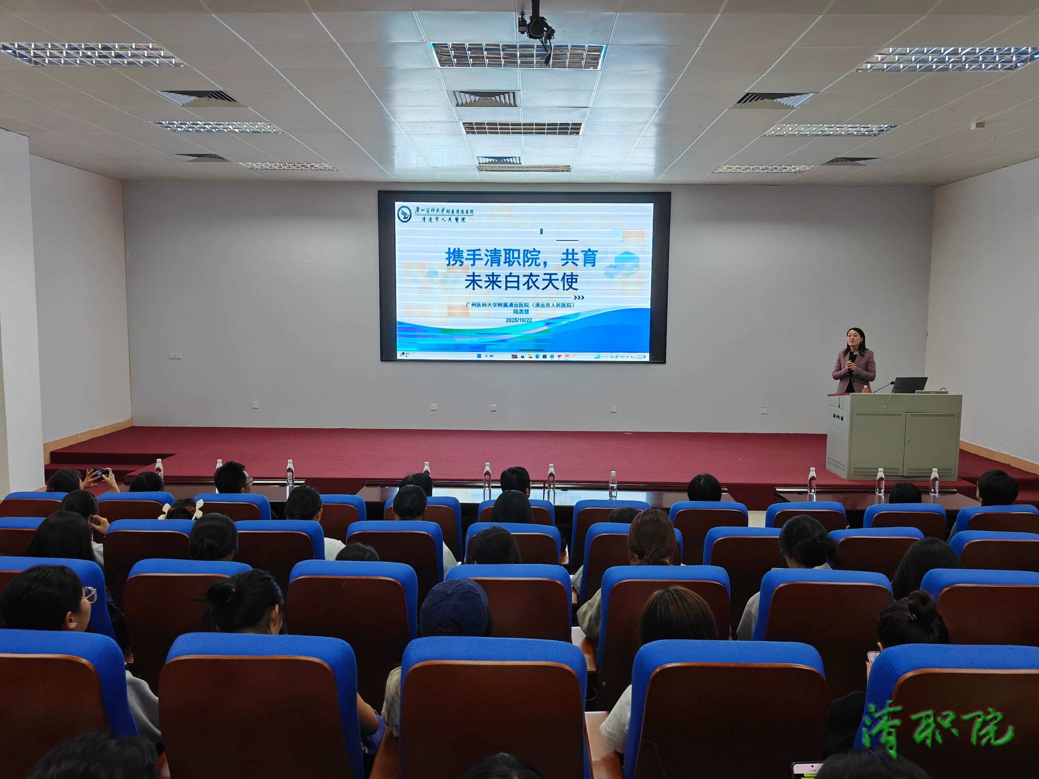 10月22日,护理学院承办2025-2026学年第六期“百万英才汇南粤”蟠龙青年就业沙龙活动。清远市人民医院护理部主任陆惠慧、清远市清城区人民医院护理部主任黄水芳、学生工作部和护理学院班子领导、学院师生300余人参加活动。