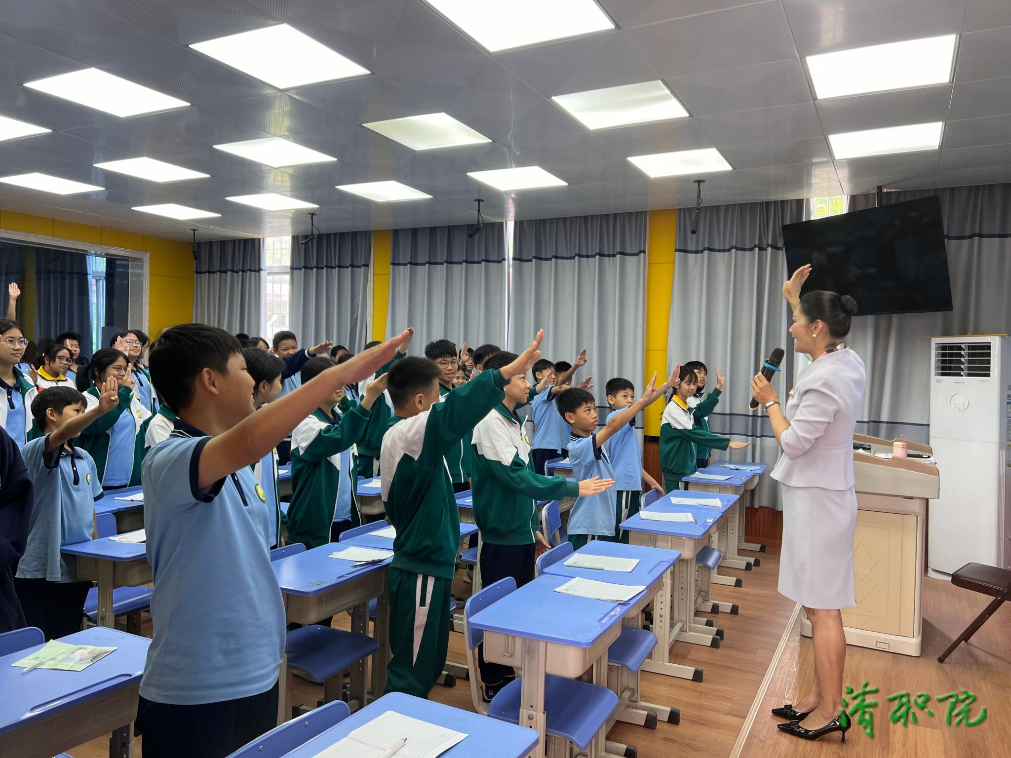 培训现场,林清群老师紧密贴合中学生日常文明礼仪的实际场景,从仪容仪表、仪态举止、沟通用语等多个关键维度展开细致讲解。在仪容仪表方面,林老师着重指出,中学生应保持整洁得体的着装风格,面容清爽、发型适宜,充分展现出青春的朝气与活力;在仪态举止环节,林老师对站立、就坐、行走等姿势进行了规范示范,要求同学们做到姿态端正、动作优雅,以此彰显良好的个人气质;在沟通用语方面,林老师重点讲解了文明用语的使用规范,倡导同学们运用温和、亲切、专业的语言与他人交流,让彼此在相处过程中切实感受到尊重与关怀。