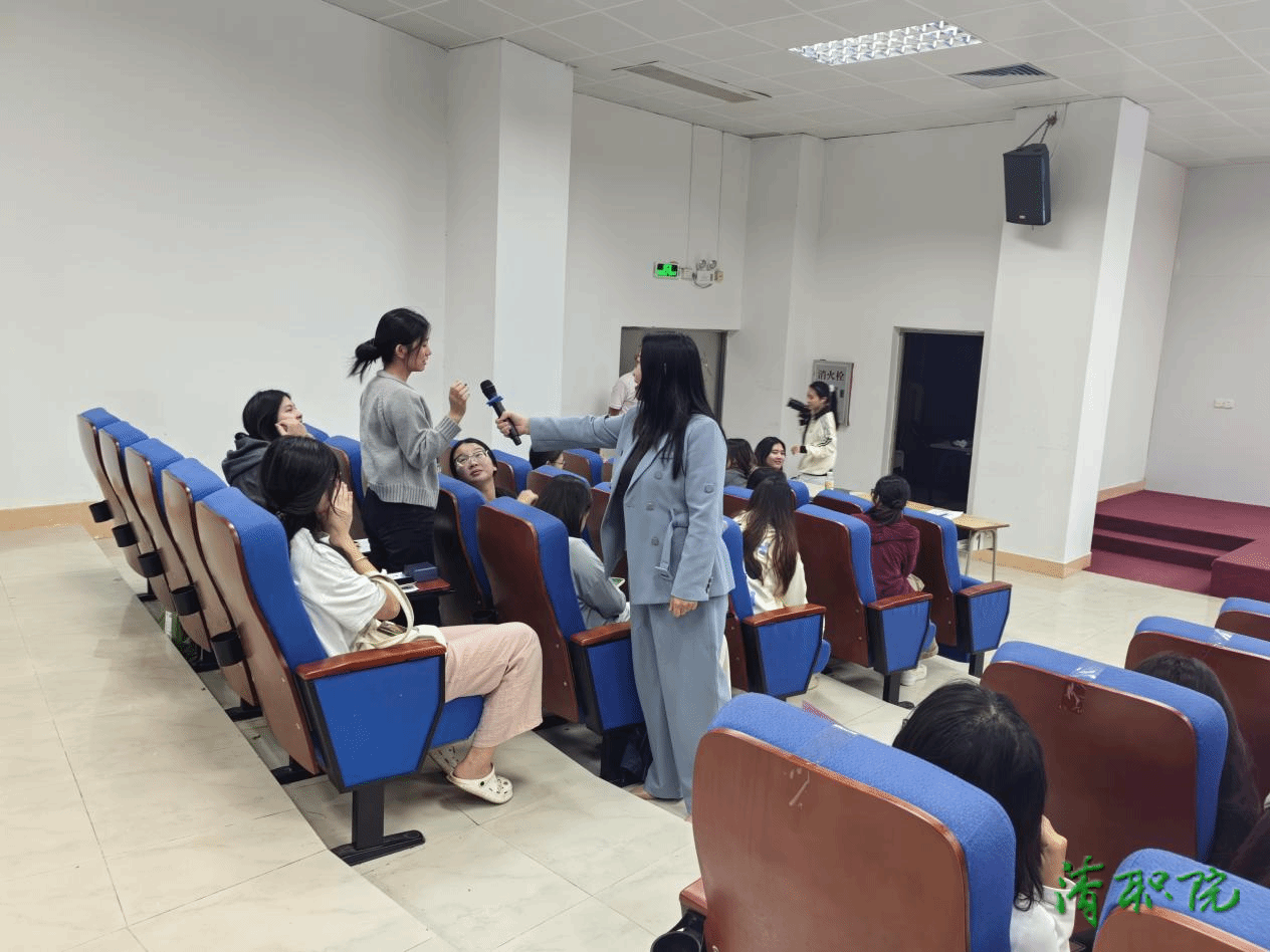 活动现场,深圳柏氏茶业有限公司经理冯红梅进行了精彩的宣讲,并特别安排学院2023级实习生分享在岗工作体验,以亲身经历介绍公司企业文化、岗位需求及发展前景,让在场学生获得真实直观的求职参考。深圳市深家网络信息服务有限公司培训总监郭蕾蕾重点推介儿童成长陪伴师培训项目,该项目通过6个月系统培训并经考核合格后,学员可获中级职业证书,为有意向从事家政、托育服务领域的学生提供专业发展路径。清远市数智跨境网络科技有限公司负责人朱丹华则以互动问答形式与学生深入交流,针对行业趋势、岗位技能要求等问题逐一解答,现场为积极提问的学生送上定制小礼物,氛围热烈活跃。