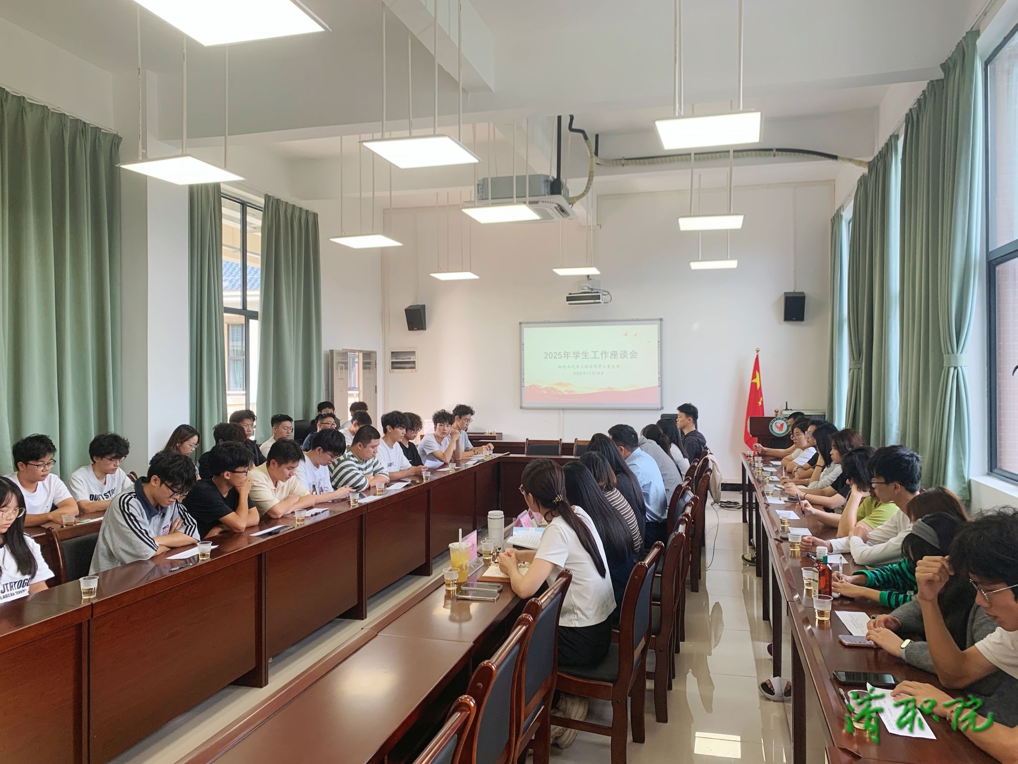 为充分发挥党建引领学生工作的核心作用,深入倾听学生心声、精准回应学生诉求,11月10日,必赢nn699net学工党支部组织召开学生工作座谈会。党总支副书记肖开前、学工党支部全体党员教师,以及学生预备党员代表、2024级入党积极分子、2025级各班班长代表参会。