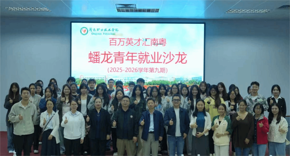 11月12日,外语与经贸学院在精技厅成功承办2025-2026学年第九期“百万英才汇南粤”蟠龙青年就业沙龙。活动特邀3家优秀企业到场宣讲,学生工作部部长王宗成、外语与经贸学院领导班子成员以及师生代表共300余人参加活动。